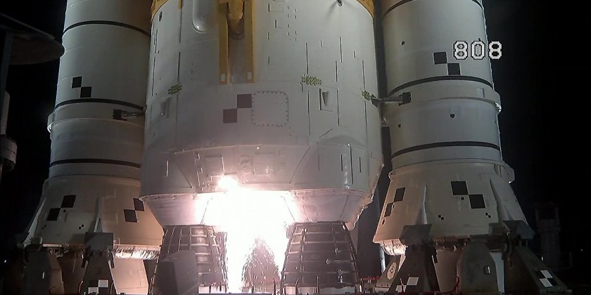 NASA's new moon rocket blasted off on its debut flight with three test dummies aboard early Wednesday, bringing the U.S. a big step closer to putting astronauts back on the lunar surface for the first time since the end of the Apollo program 50 years ago.