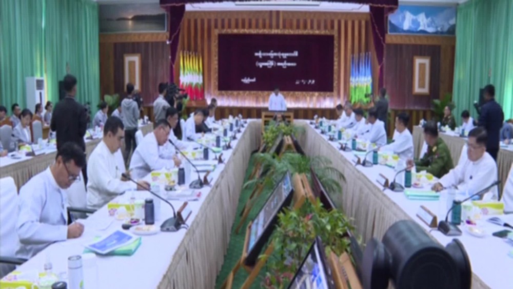 Member of the State Administration Council Deputy Prime Minister Union Minister for Defense Admiral Tin Aung San in his capacity as the Chairman of the National Land Utilization Council delivered a speech at the fifth meeting of the Council held at the In-Gyin Hall of the Ministry of the Natural Resources and Environmental Conservation at 9 Am on 22nd December.
