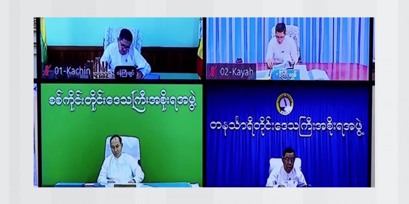 Also present at the meeting were the vice chair of the National Water Resources Committee Deputy Prime Minister Union Minister for Transport and Communications Admiral Tin Aung San, committee members Union Ministers, Chairman of Nay Pyi Taw Council, committee secretary and officials and the Regions and States Chief Ministers attended the meeting via Video Conferencing.