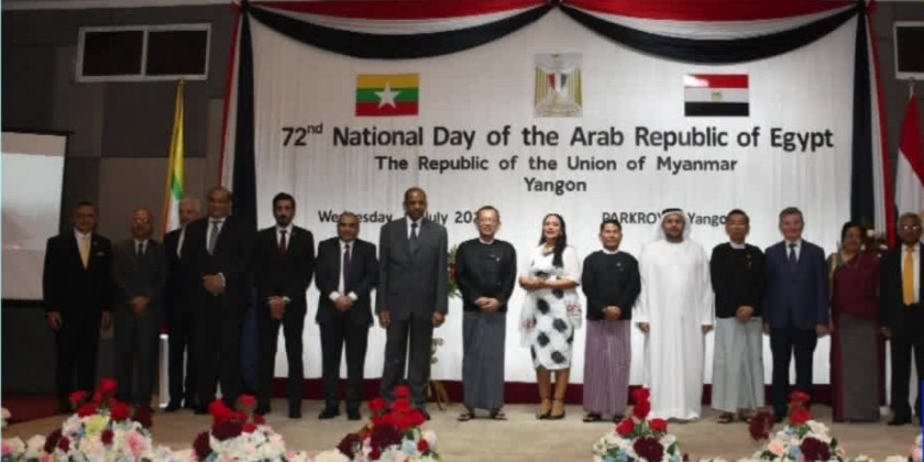 The reception marked the 72nd National Day of the Arab Republic of Egypt was held at Park Royal Hotel in Yangon in evening on 17th July and attended by the Union Minister for Investment and Foreign Economic Relations Dr. Kan Zaw.