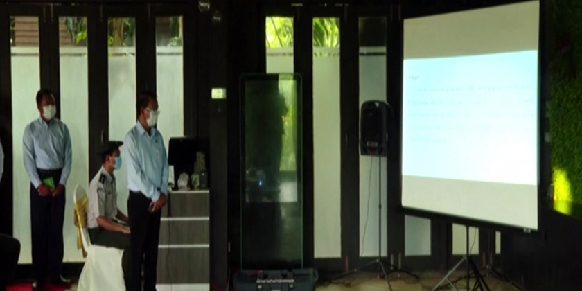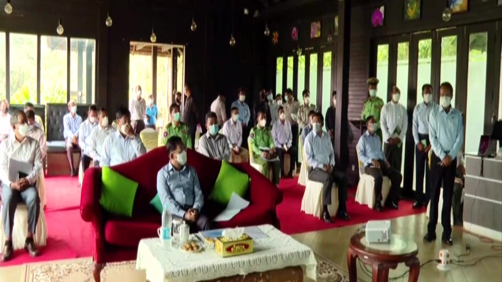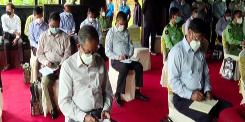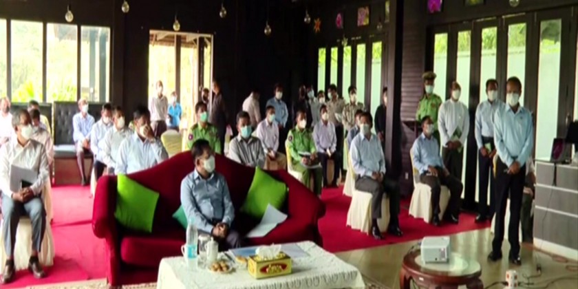 First, the Senior General and party were welcomed by the officials of the National Kandawgyi Garden. Director-General U Htay Aung of the Forest Department and Director U Zaw Min Naing of the irrigation department reported data on the garden.