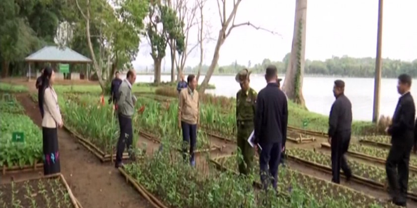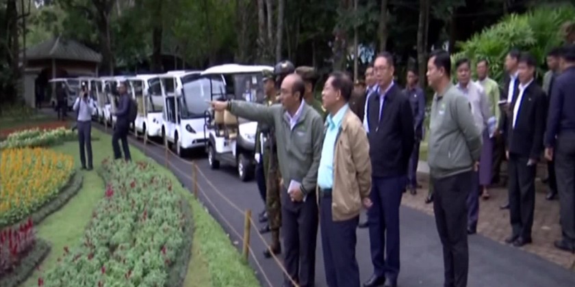 The Chairman of State Administration Council Prime Minister Senior General Min Aung Hlaing accompanied by the Council Secretary Lt-Gen Ye Win Oo, Council Member Lt-Gen Nyo Saw, Union Ministers, Mandalay Region Chief Minister, Senior Tatmadaw Officials from the Office of the Commander In Chief, Commander of Central Command, Mandalay Mayor and officials inspected the status of conservation works of National Kandawgyi Gardens in Pyin Oo Lwin in the morning on December 8.