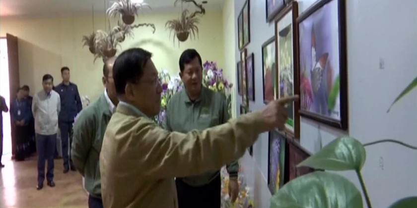 Next, the SAC Chairman and party viewed around the Kandawgyi Gardens by motorcade including the displays in butterfly museum and orchid garden, local flower species research center and experimental research plantation and the status of producing fertilizer of Organic Earthworm Castings and gave necessary instructions to the responsible officials. The SAC Chairman Prime Minister fed the ornamental fishes and cordially greeted the people of making vacation.