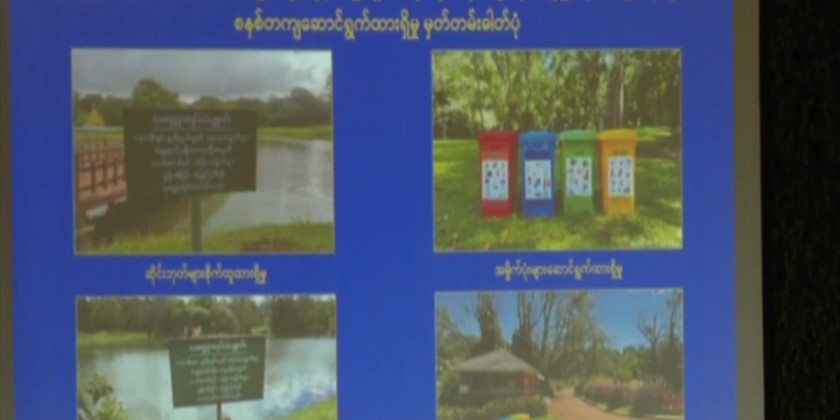 At the briefing of the garden, Director General Dr. Thaung Naing Oo of the Forest Department clarified the location and historical facts of National Kandawgyi Gardens, completion of implementations on guidance given during the inspection tour of the Head of State, status of water inflow into the lake, construction of stone laid drainages, cleaning and greening tasks, growing duck weeds, orchids, Pyin Oo Lwin Cherry and Japan Cherry and culturing ornamental fishes in the lake, CEO U Yarzar Htwe of Kandawgyi Gardens Responsible Company explained the preparations for organize 16th flower festival of National Kandawgyi Gardens, arrangements to display local and international flowers dividing 8 zones and entertainment programs and Mandalay Region Chief Minister U Myo Aung elaborated implementations for the urban development of Pyin Oo Lwin Township, implementations for being a tourist destination City as per the sectors and the cleaning and greening tasks for the Township.
