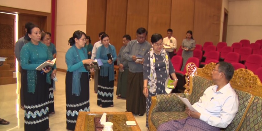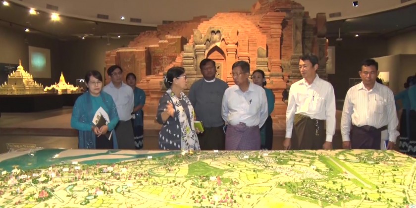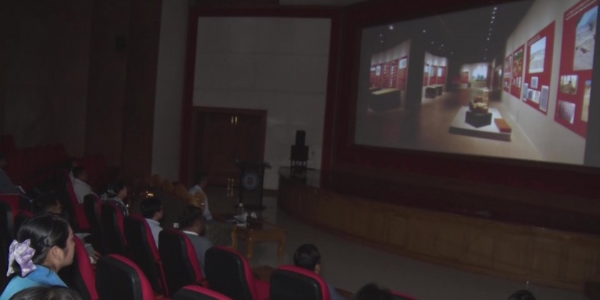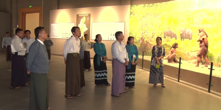 Union Minister for Religious Affairs and Culture U Tin Oo Lwin, together with officials, visited the National Museum in Nay Pyi Taw on Saturday. During the visit, they enjoyed a screening of a video clip showcasing the exhibits at the museum's Mini Theatre.