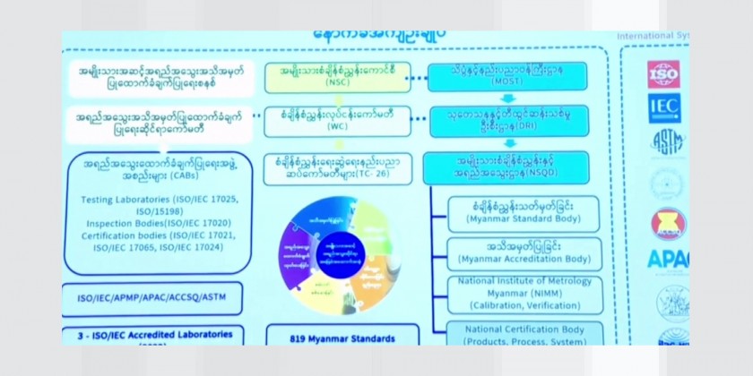 At the ceremony, Union Minister for Science and Technology Dr. Myo Thein Kyaw delivered an opening speech. It’s reported that once the project is implemented, national certification system for certifying products, processes and services will be developed.