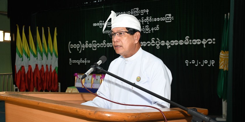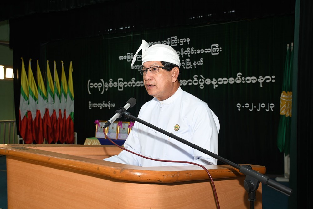 Then, the Chief Minister U Soe Thein presented cash of honor to the students who sung the Zartiman, Myoma Gon, Our Myoma and Myanmar School songs and cordially greeted those who attended the ceremony.