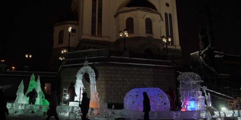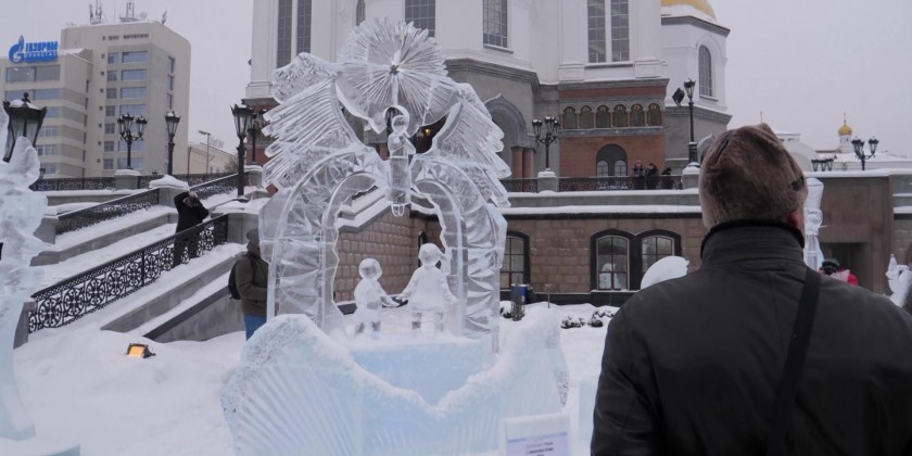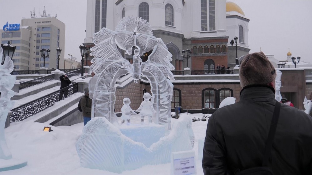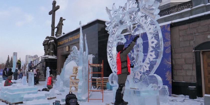 The 16th Star of Bethlehem Ice Sculpture Festival dedicated to the Nativity of Christ, was held in Yekaterinburg on Friday. The event traditionally takes place in the first days of January on the square in front of the Church on the Blood, where locals of the city can view the entire process of the creation of the ice sculptures.