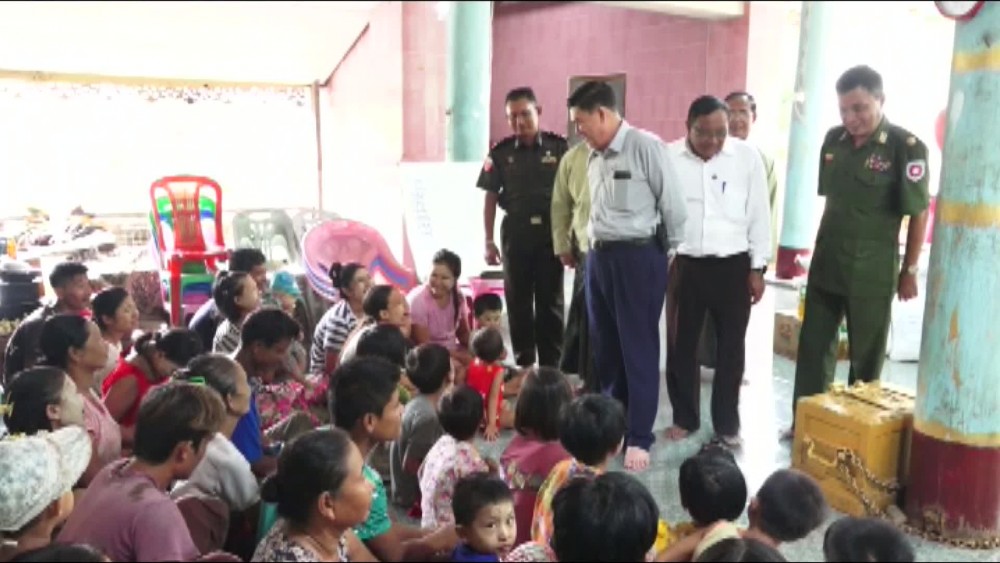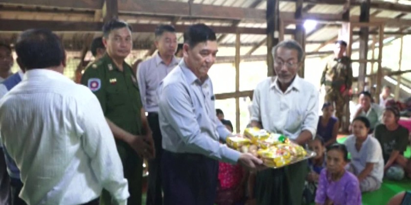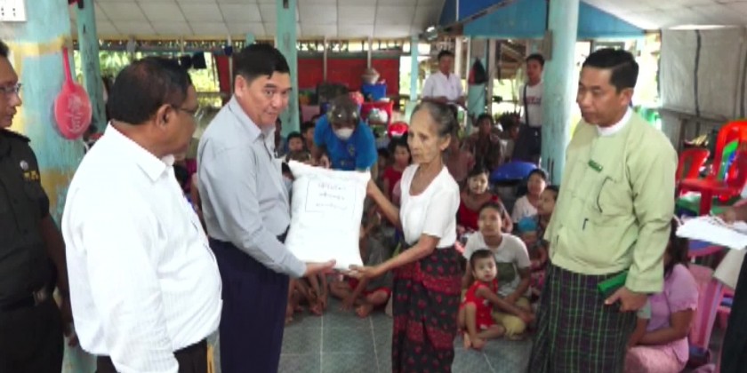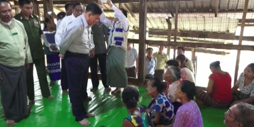 Chairman of Rakhine State Natural Disaster Management Committee, Chief Minister U Htein Lin together with departmental officials met with the people who affected by flood in Thandwe Township on Thursday. They gave the words of encouragement and provided necessary items.