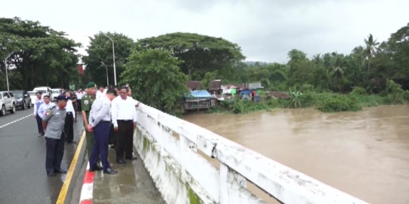 The flood victims are now taking temporary shelter at the community hall of Su Taung Pyae Monastery. Then, they inspected the conditions of surging level of Thandwe River over the Dwarawadi Bridge and officials of the department of irrigation and water utilization management reported on the reasons of surging river water level, and the activities being carried out to improve the flow of water in Thandwe River.