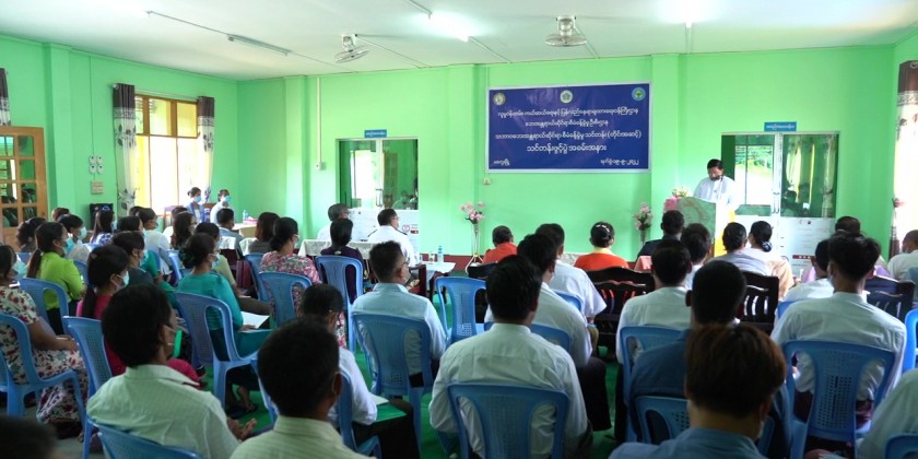 Magway Region chief minister U Tint Lwin, social affairs minister U Thant Zin Ko Ko, state level departmental officials and the trainees attended the Region-level Natural Disaster Management Course conducted by the Magway Region department of the natural disaster management held at the office of department at 1 p.m. on 19th September.