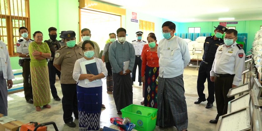 After the opening ceremony of the training course, chief minister U Tint Lwin and party inspected the storage of rescue items in the warehouse so that the Region Disaster management Department to provide those items to the victims in a timely manner in case of happening natural disaster and then the chief minister gave the necessary instructions.