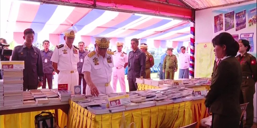 After that, the Chairman of the State Administration Council, the Commander-in-Chief of Defence Services and officials toured the 2 63-meter long Anti-Submarine warships which are the vessels commissioned into service, and were briefed by the responsible personnel. Later, the Senior General and party took a commemorative photo with the invited guests.