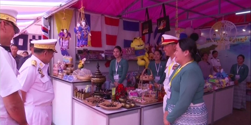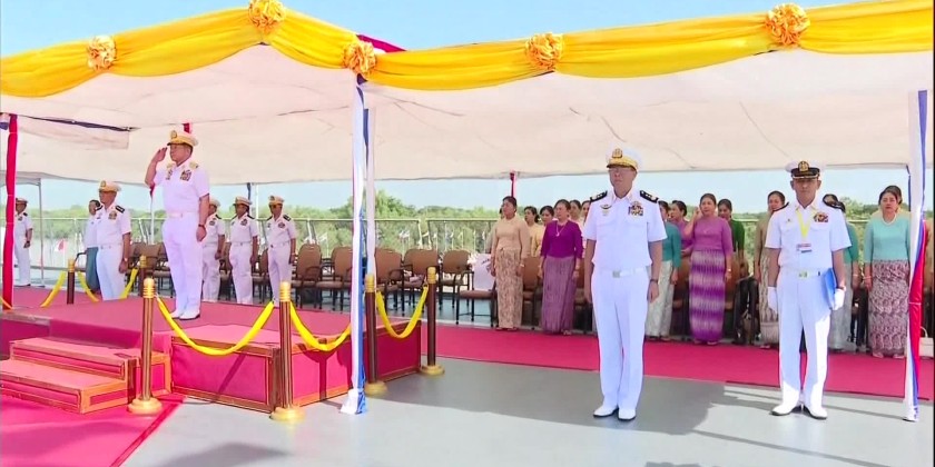 The Senior General from warship Mottama took a salute of the Guard of Honour and inspected it. Meanwhile, war vessels Yan Taing Aung and Yan Gyi Aung conducted a 21-shot salute. The frigates included frigate "Aung Zeya,""Kyan Sit Thar," "Sin Phyu Shin,", one corvette “Tapin Shwe Htee” , offshore patrol craft “Inn Lay” and Anti- Submarine vessel "Yan Ye Aung, fast patrol crafts and fast attack crafts in single line formation and line abreast formation saluted the Senior General.
