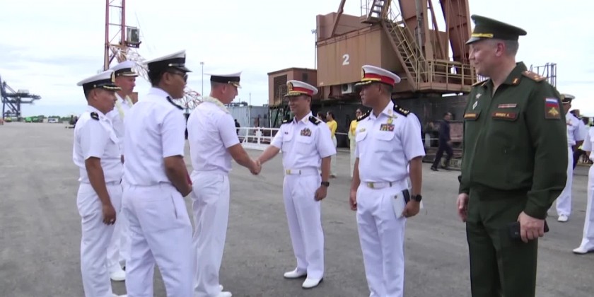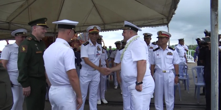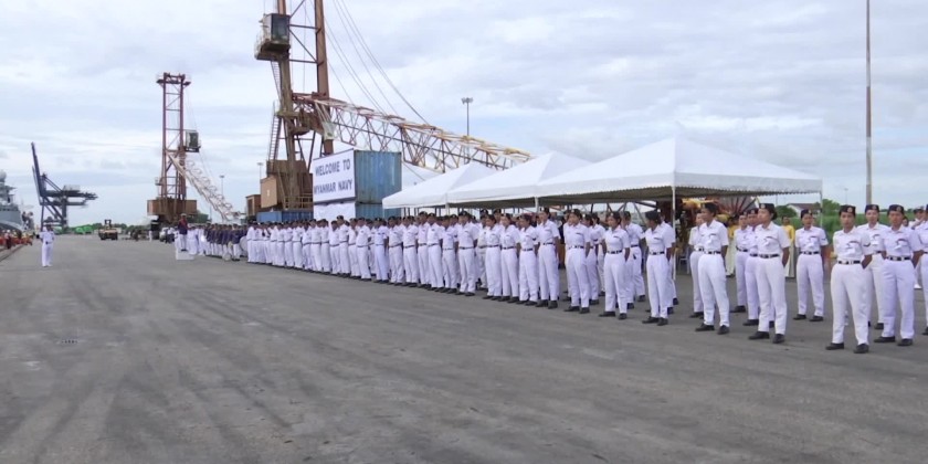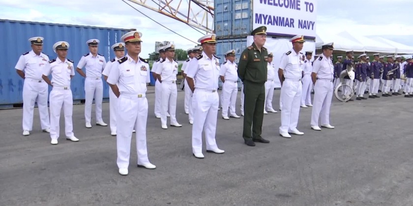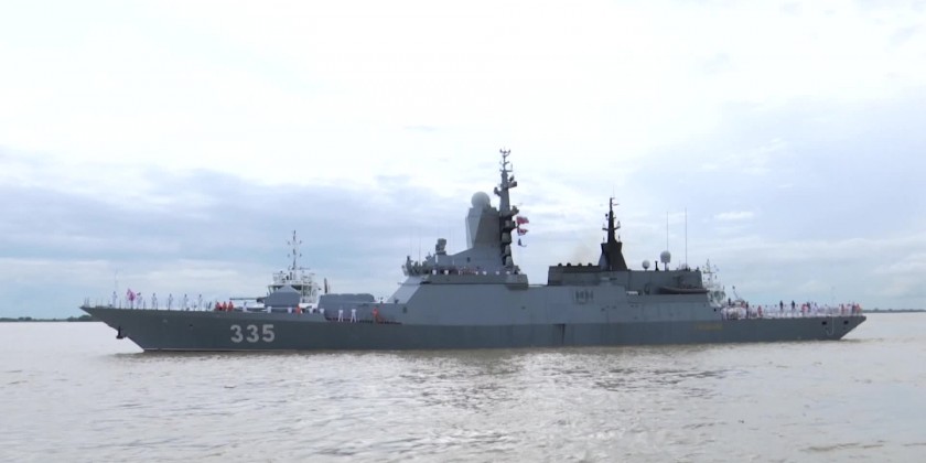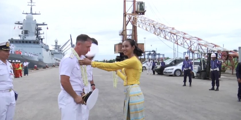 On Sunday, the Russian corvettes Gromky,Rezky and Tsydenzhapov, accompanied by the sea tanker Pechenga, arrived at Yangon’s Thilawa Port on Sunday.