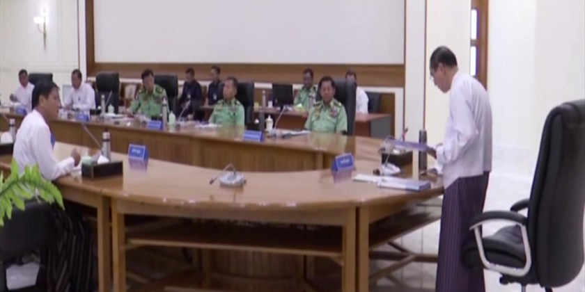 Union Minister for Home Affairs Lt-Gen Soe Htut discussed the occurrence of violent acts in the nation based on the voting frauds in 2020 General Elections, endeavours for security, peace, stability and law enforcement and supporting on extension of further 6 months for the declared period of the State of emergency across the nation in line with the State Constitution.