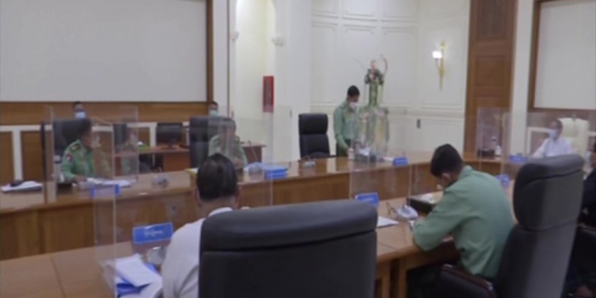 Present at the meeting were Pro Tem President U Myint Swe, Speaker of Pyithu Hluttaw U T Khun Myat, Commander-in-Chief of Defence Services Senior General Min Aung Hlaing, Deputy Commander-in-Chief of Defence Services Commander-in-Chief (Army) Vice-Senior General Soe Win, Union Minister for Defence General Mya Tun Oo, Union Minister for Home Affairs Lt-Gen Soe Htut, Union Minister for Foreign Affairs U Wunna Maung Lwin, Union Minister for Border Affairs Lt-Gen Tun Tun Naung, specially invited Secretary of the State Administration Council Lt-Gen Aung Lin Dwe and Joint-Secretary LtGen Ye Win Oo. Vice-President U Henry Van Thio asked for a leave of absence from the meeting.