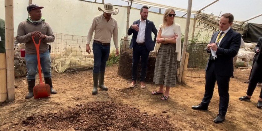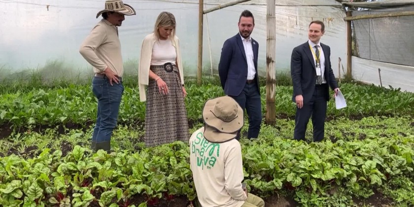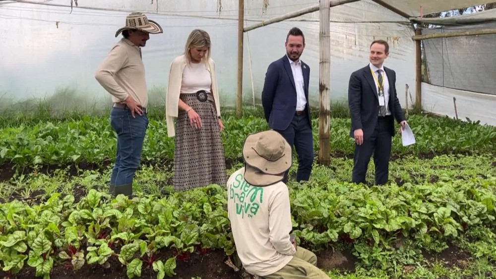 Netherlands’ Queen Maxima visited the farm near the city of Medellin, during a three-day visit to Colombia, as special advocate to the United Nations Secretary-General for Inclusive Finance for Development (UNSGSA).
