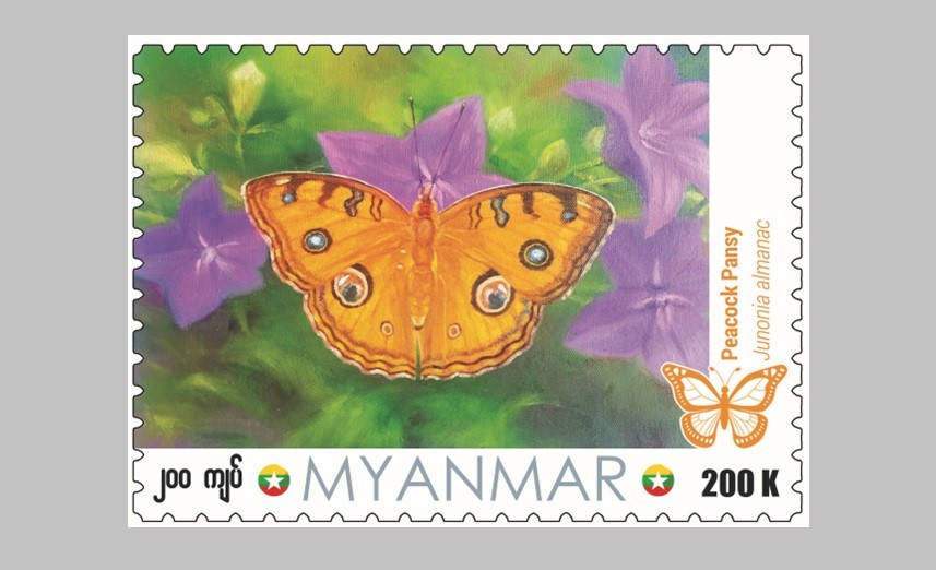 Myanmar Post, under the Ministry of Transport and Communications, is set to issue a new 200-kyat stamp on July 31st. This stamp features the "Peacock Pansy," a native butterfly species listed by the Ministry of Natural Resources and Environmental Conservation.