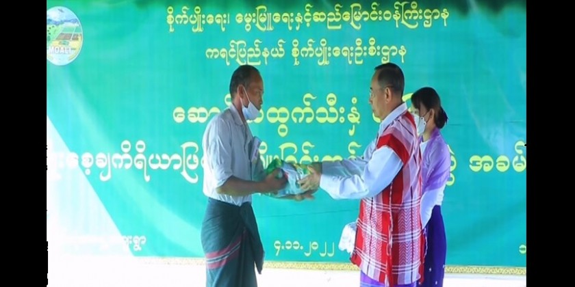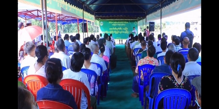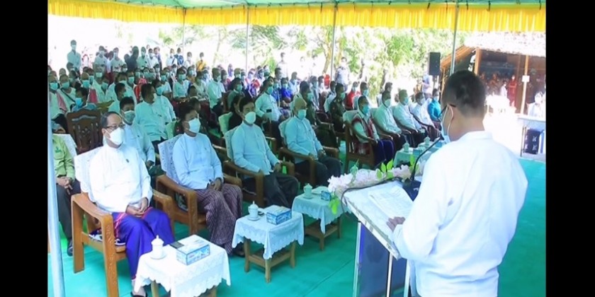 Afterward, the SAC members, Union Ministers, Chief Minister attended the providing winter crop sunflower seeds, seed sowing machine and demonstration of cultivation and the SAC member Mann Nyein Maung made a remark.