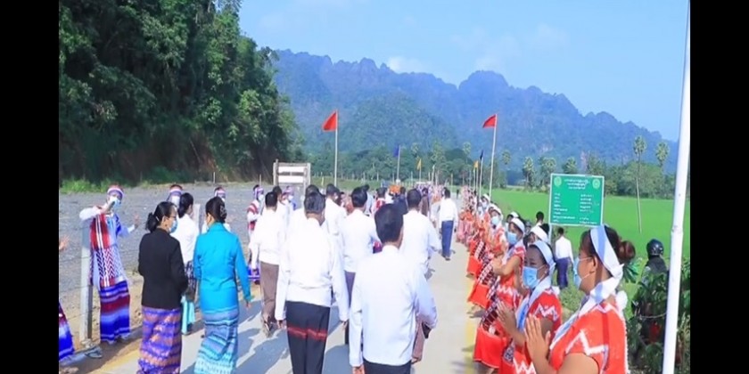 At a gesture of hailing the 67th Anniversary Kayin State Day, the opening ceremony of new concrete road way to the Htunt Pa Taing Lake was held at the entrance gate of the road in KawtThinShuu Village-tract of Hpa-An Township on Thursday and the members of State Administration Council, Union Ministers and Chief Minister attended and opened road.