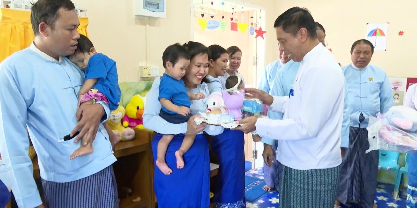 Union Minister Dr. Soe Win reaffirmed the government’s commitment to child development programs across Myanmar. He stated that daycare and pre-primary education initiatives are being expanded nationwide, including training for early childhood teachers and the provision of learning materials. The event concluded with the exchange of gifts and supplies for the daycare, and the formal ribbon-cutting ceremony. Attendees then took a tour around the new facility.