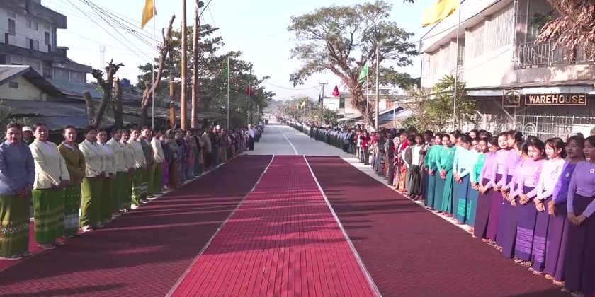 Cash awards were later presented to Pom Pom dance troupes, Drum and Bugle Corps and aerobic dance teams from basic education schools. The newly opened MinGanSin Road is 1,400 feet long, 24 feet wide and 8 inches thick and was funded by the Rakhine State Government.