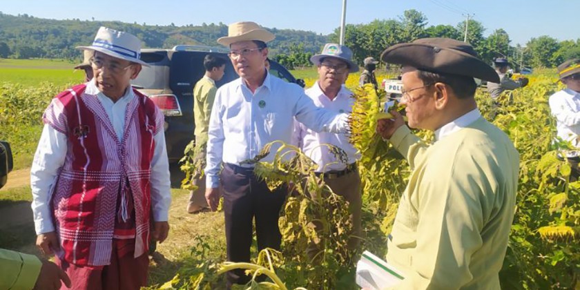 On the same day, the SAC Member, the Chief Minister and officials inspected paddy plantation in KaYinSu Village of ThaukKyarDuu Village-tract, held talks with farmers and gave necessary instructions.