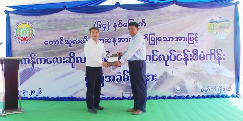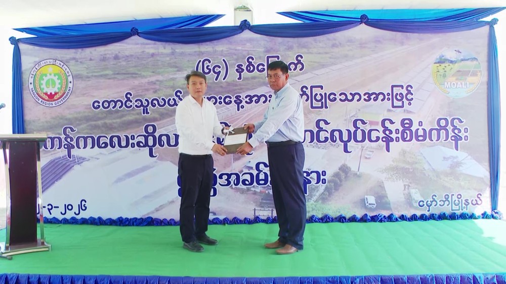 The ceremony included speeches by the Minister of Economic Affairs of Yangon Region, and the Director of the Irrigation and Water Utilization Management Department, followed by a farmers’ representative expressing gratitude. Representatives from Sundi Solar Company handed over project equipment.