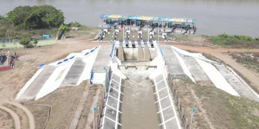After the ceremony, Chief Minister U Soe Thein and attendees inspected the new facility. The project features a solar-powered system to operate 250 kW motors with multiple water pumps, supported by a 150 kW on-grid inverter and a 1500 kVA step-up transformer. It can supply water for 3,142 acres of summer paddy fields and provide up to 60 million gallons per day of drinking water to Yangon city using a combination of solar and electricity, with backup electric power at night if needed.