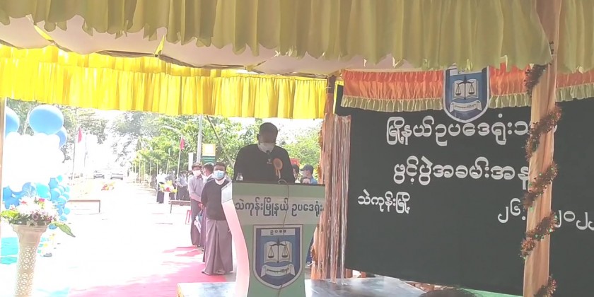 Ministry of Legal Affairs opened a law office in Thaekone Township in Pyi District of Bago Region on Saturday. This law office opening ceremony began with a speech by Deputy Minister and Deputy Attorney General U San Lwin.
