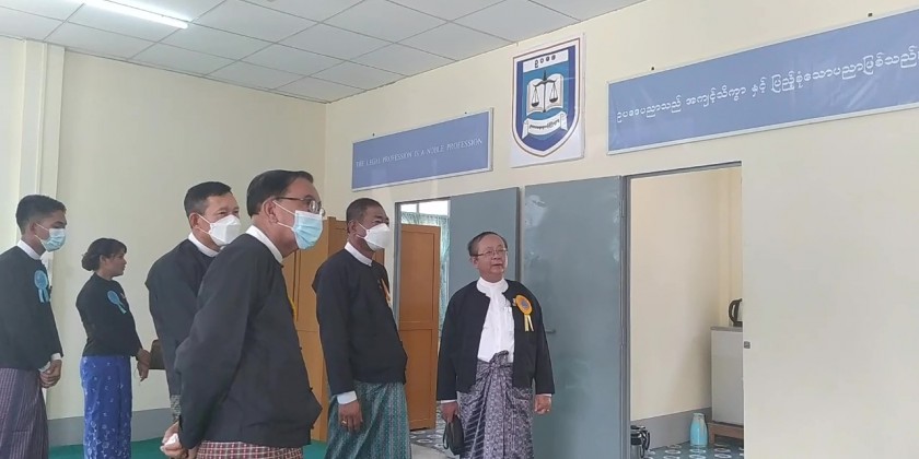 Also, Bago Region law officer U Khin Maung Lwin explained construction of the office and expressed words of thanks. The Deputy Minister and officials ceremonially opened the law office and viewed around the building.