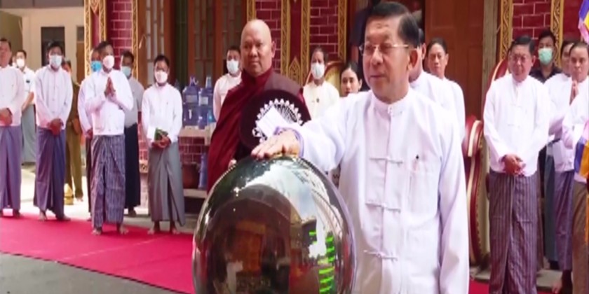 The Senior General, wife and attendees visited the building and offered alms to members of the Sangha led by Bhamo Sayadaw. The five-storey building was constructed with contributions of well-wishers led by the Senior General.