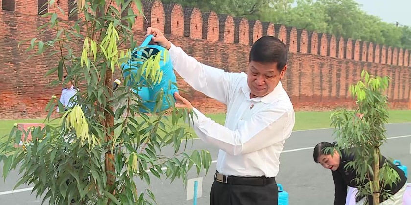 The Chief Minister and the Commander planted Gantgaw saplings, while the Region Supreme Court Chief Justice, Region Government members, and officials planted Gantgaw and jasmine saplings.