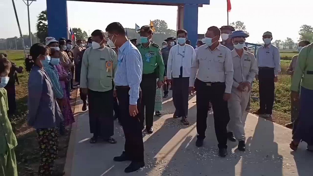 The Ayeyarwady Region Chief Minister U Tin Maung Win and region ministers attended the opening ceremony of NyaungKoneChaungPhyar-ThayetKone New Concrete Road constructed by the department of rural road development in EinMe Township, MyaungMya District; Ayeyarwady Region held in commemorating the 74th Anniversary of Independence Day and opened the new road at 7 a.m. on January 3.