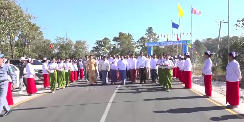 Marking the 78th Shan State Day, the new 22 wide asphalt concrete to Shwe Phone Pwint Pagoda was held in Taunggyi Township on 6th February. Member of the SAC, Union Minister for Border Affairs Lt-Gen Yar Pyae, SAC members Porel Aung Thein, Dr. Ba Shwe, Khun San Lwin and Chief Minister U Aung Aung attended the ceremony.