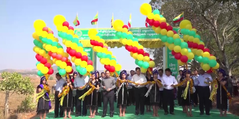 Afterwards, Lt-Gen Yar Pyae and party attended the opening ceremony of 1/6.82 mile Taung Myay Char – Myauk Myay Char - new concrete road section on Heho-Bawsai Road in Kalaw Township. At the ceremony, Union Minister for Cooperatives and Rural Development U Hla Moe made an opening speech. Subsequently, the Chief Minister U Aung Aung clarified the construction process and a local resident expressed words of gratitude.