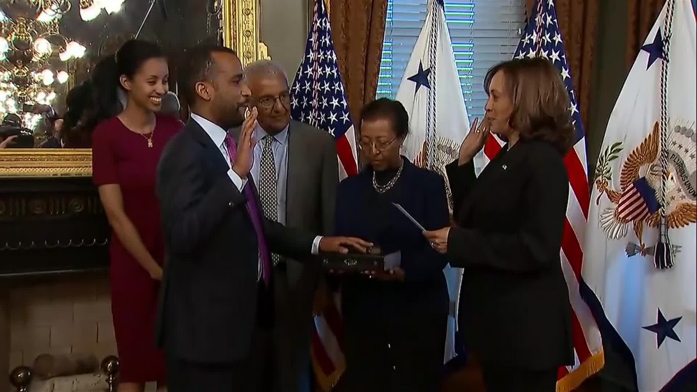 President Joe Biden's choice for the U.S. ambassador to the Association of Southeast Asian Nations, Yohannes Abraham, was sworn in by Vice President Kamala Harris in Washington, DC Monday.
