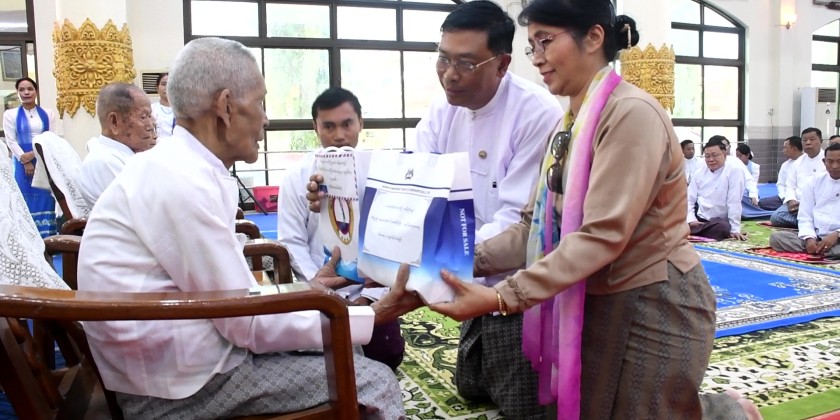 Chief Minister U Zaw Naing Oo delivered the opening remarks and paid respect to the 35 elderly together with the attendees. Then, an elderly expressed words of appreciation. This was followed by the presenting of cash assistance and gifts to the elderly.