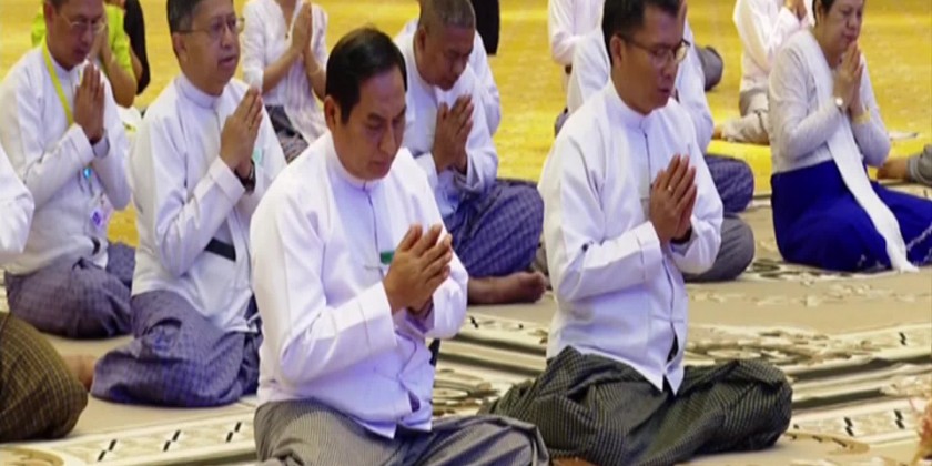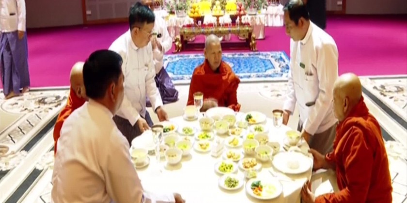The State Administration Council held a ceremony to listen to the Paritta recitation on the occasion of the Myanmar New Year on Monday. The ceremony was attended by members of the Sangha and Secretary of the State Administration Council Lt-Gen Aung Lin Dwe, Deputy Minister for Religious Affairs and Culture U Aye Tun, permanent secretaries and directors-general and many other officials.