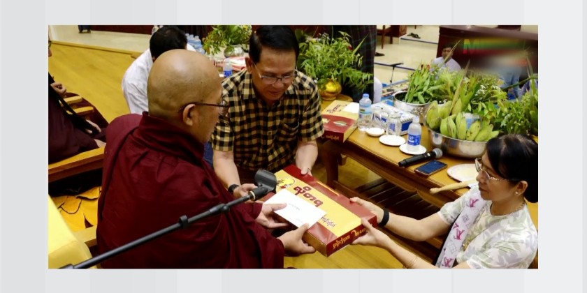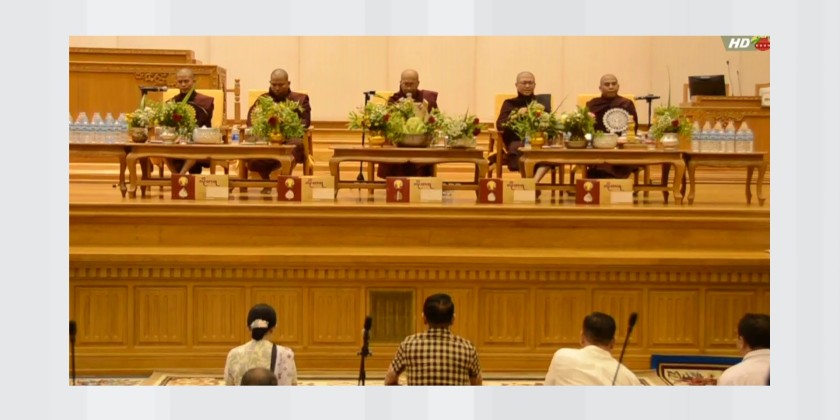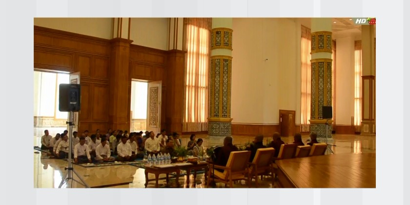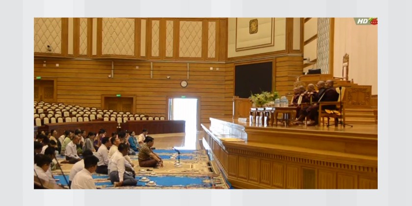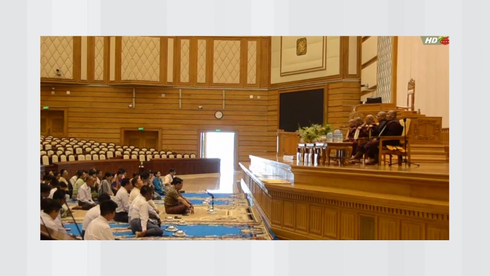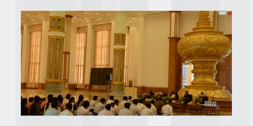 A Paritta recitation ceremony was held at the Pyithu Hluttaw (C) Hall in the Hluttaw Building in Nay Pyi Taw on Friday, to mark the first day of the Myanmar New Year 1388. The Presiding Patron of Rajadhani Samane Kyaw Monastery graced the ceremony, alongside the Deputy Speaker of Pyithu Hluttaw U Maung Maung Ohn and his wife, the Permanent Secretary of the Pyithu Hluttaw Office and staff families.