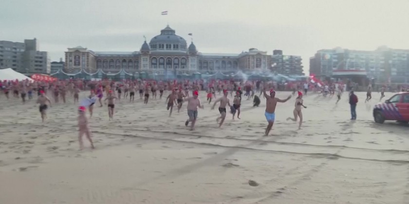 Thousands of people plunged into the icy cold North Sea as part of a New Year's Day tradition in the Dutch seaside town of Scheveningen on Sunday.