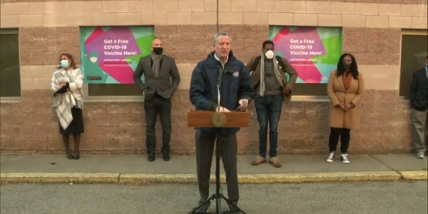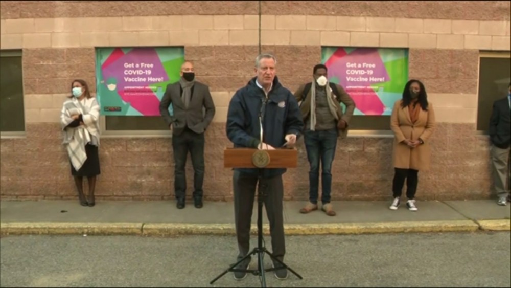 New York mayor tours 24-hour vaccine site