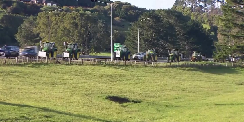 Farmers across New Zealand took to the streets on their tractors Thursday to protest government plans to tax cow burps and other greenhouse gas emissions, although the rallies were smaller than many had expected.