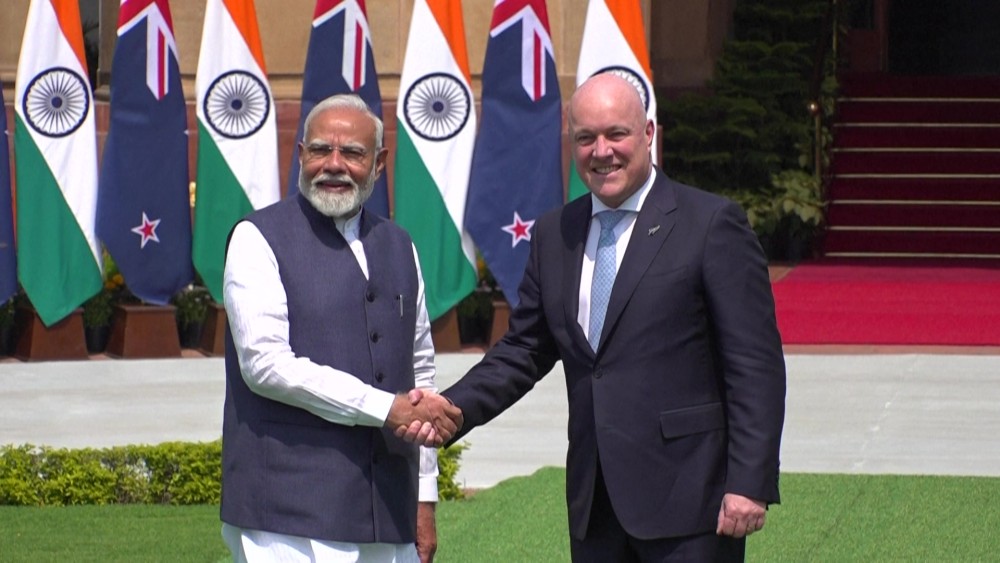 New Zealand Prime Minister Christopher Luxon met with his Indian counterpart Narendra Modi on Monday and said both countries would work towards a balanced, ambitious and comprehensive agreement.