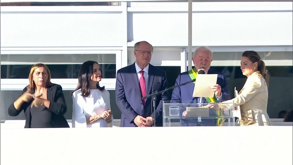Newly sworn in Lula emotional during speech