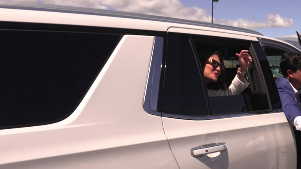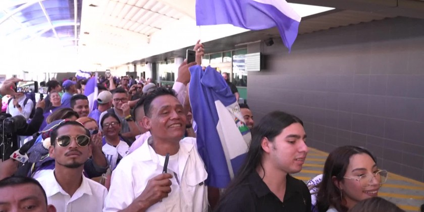 Dozens of Nicaraguans gathered at the San Jose airport in Costa Rica to cheer and chant as Miss Universe Sheynnis Palacios arrives for a two-day promotional tour of the beauty pageant.
