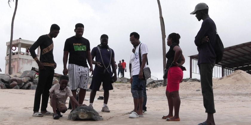 On World Cleanup Day, Nigerian conservationists set free two rescued sea turtles, a 32-kg male and a 24-kg female, after the animals were accidentally caught in fishermen's nets. The release is led by Chinedu Mogbo, founder of the Greenfingers Wildlife Conservation Initiative, which has cared for endangered species since 2012 and currently shelters six turtles and around 150 other wild animals.