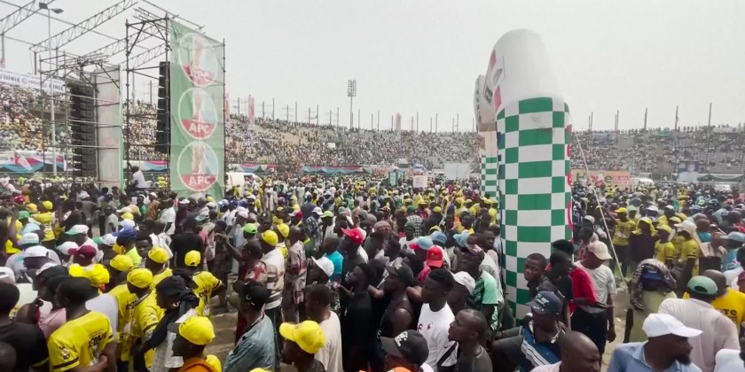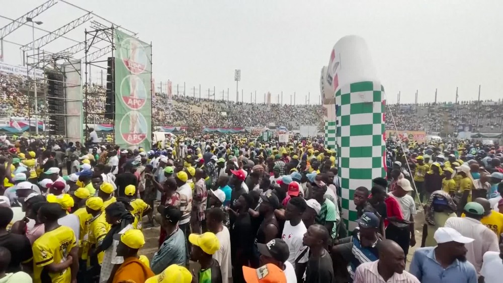 Thousands of supporters packed a stadium in Lagos to watch the rally for Tinubu. Nigeria, Africa's most populous country is battling unprecedented unemployment of 33% and growing insecurity. More than 80 million Nigerians are living in poverty, according to government data. Tinubu and 17 other candidates are running for the top job in Africa's most populous country.