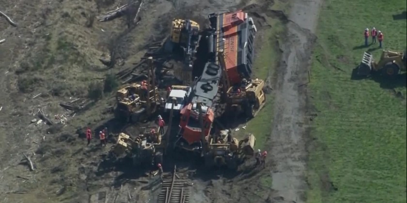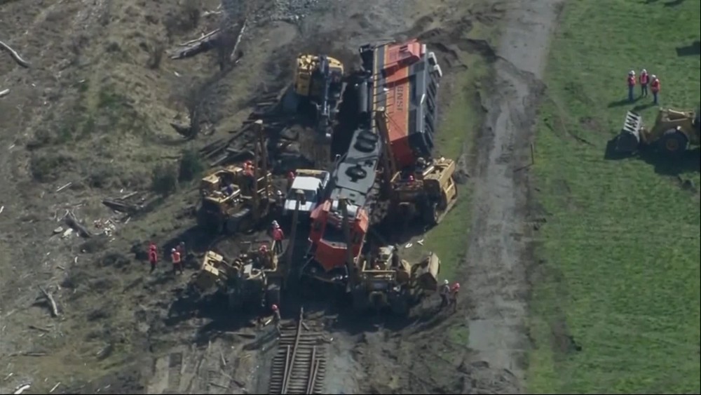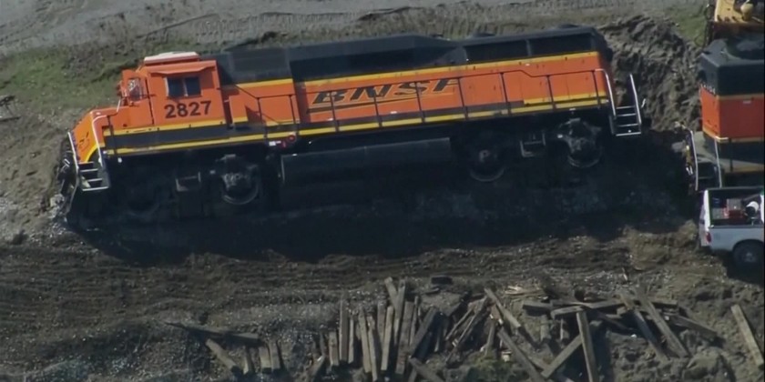 The derailment in Washington occurred on a berm along Padilla Bay, on the Swinomish tribal reservation near Anacortes. Most of 5,000 gallons of spilled diesel fuel leaked on the land side of the berm rather than toward the water, according to the state Ecology Department.